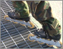 다른 사람의 손을 빌려서 V자 걷기를 연습하면 더욱 수월합니다.첫 번째 걸음은 무릎을 수직으로 올려서 수직으로 내려놓습니다.