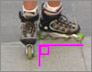 V자로 서있으면 바퀴가 움직이지 않기 때문에 안정된 자세를 취할 수 있습니다. 직각으로 발을 벌리고 중심은 약간 앞으로 둡니다. 무릎은